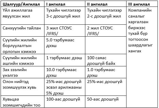 Сүүлийн жилийн ашгийн хэмжээ 100 сая төгрөгөөс доошгүй эсхүл 12 сарын хугацаанд үйл ажиллагаа явуулахад хангалттай хэмжээний ажлын капиталтай байх